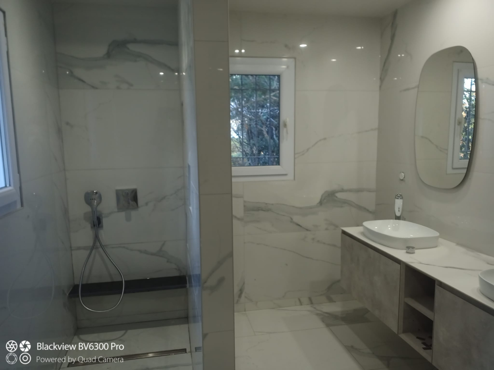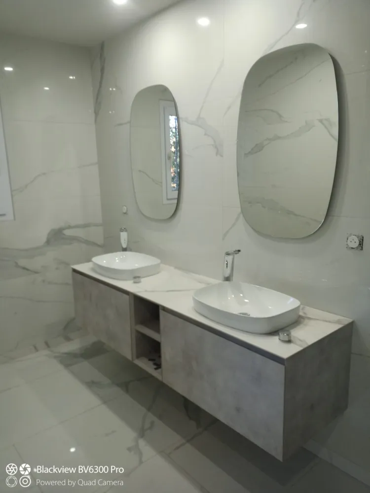 Tout cela accompagné d'un jolie meuble de salle de bain double vasque avec ses robinets encastré au meuble.