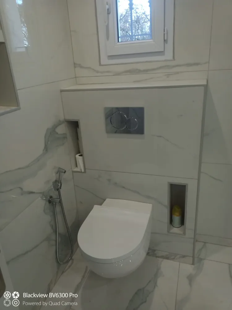 Nous avons réaliser une très belle salle de douche avec des robinet ciel de pluie encastré ainsi qu'un WC suspendu et sa douchette.